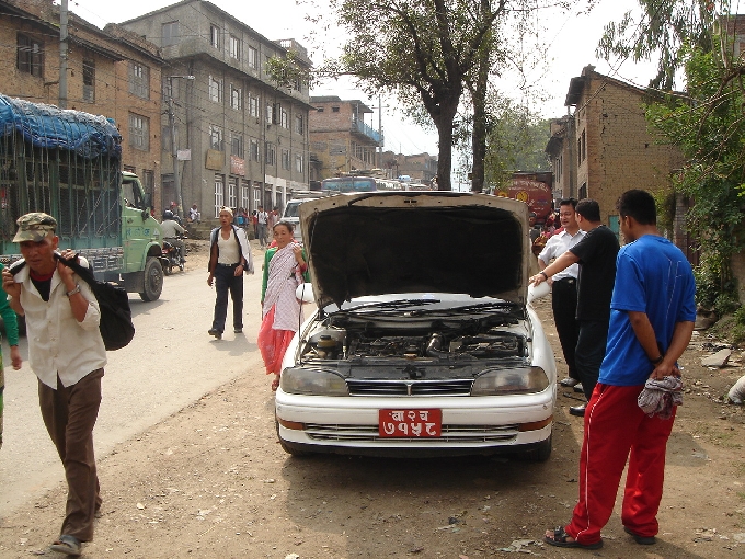 카투만두로 돌아오는 도중에 랜트카 고장