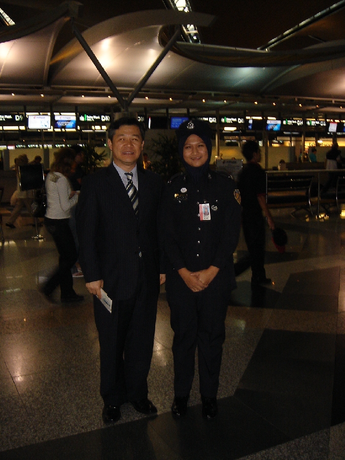 쿠알라룸프르 공항에서 여성 경관의 모습