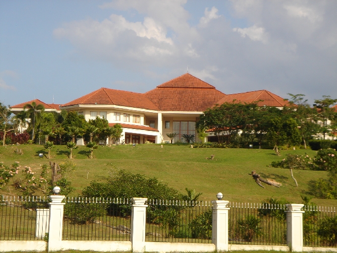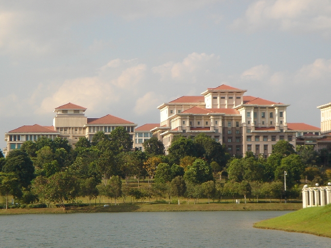 호수의 배위에서 바라본 Putrajaya의 최고급 저택