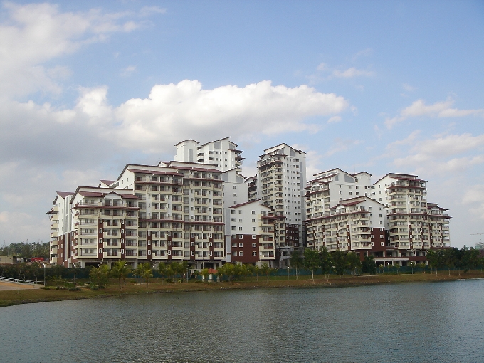 호수에서 바라본 Putrajaya의 고급 아파트