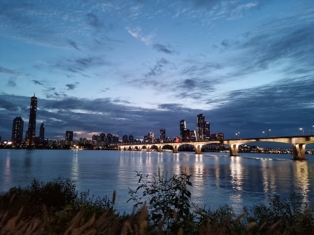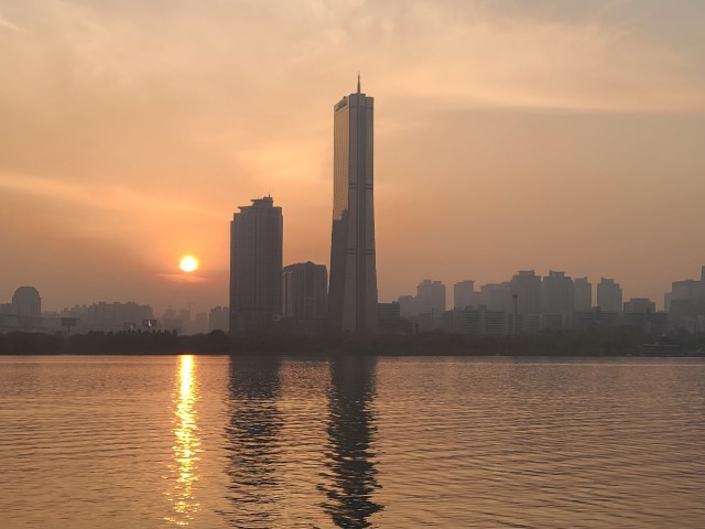 한강변에서 일몰을 봅니다
